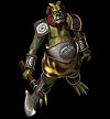 半兽人部落的领袖。它在绵延百年的战争中领导半兽人进行侵略,是具有杰出智慧和战斗力的半兽人。如果它死了,新的半兽勇士又会被选出来继续血腥的战争。它穿着盔甲和从上一代半兽勇士继承来的武器,有强大的攻击力和防御力。 |
